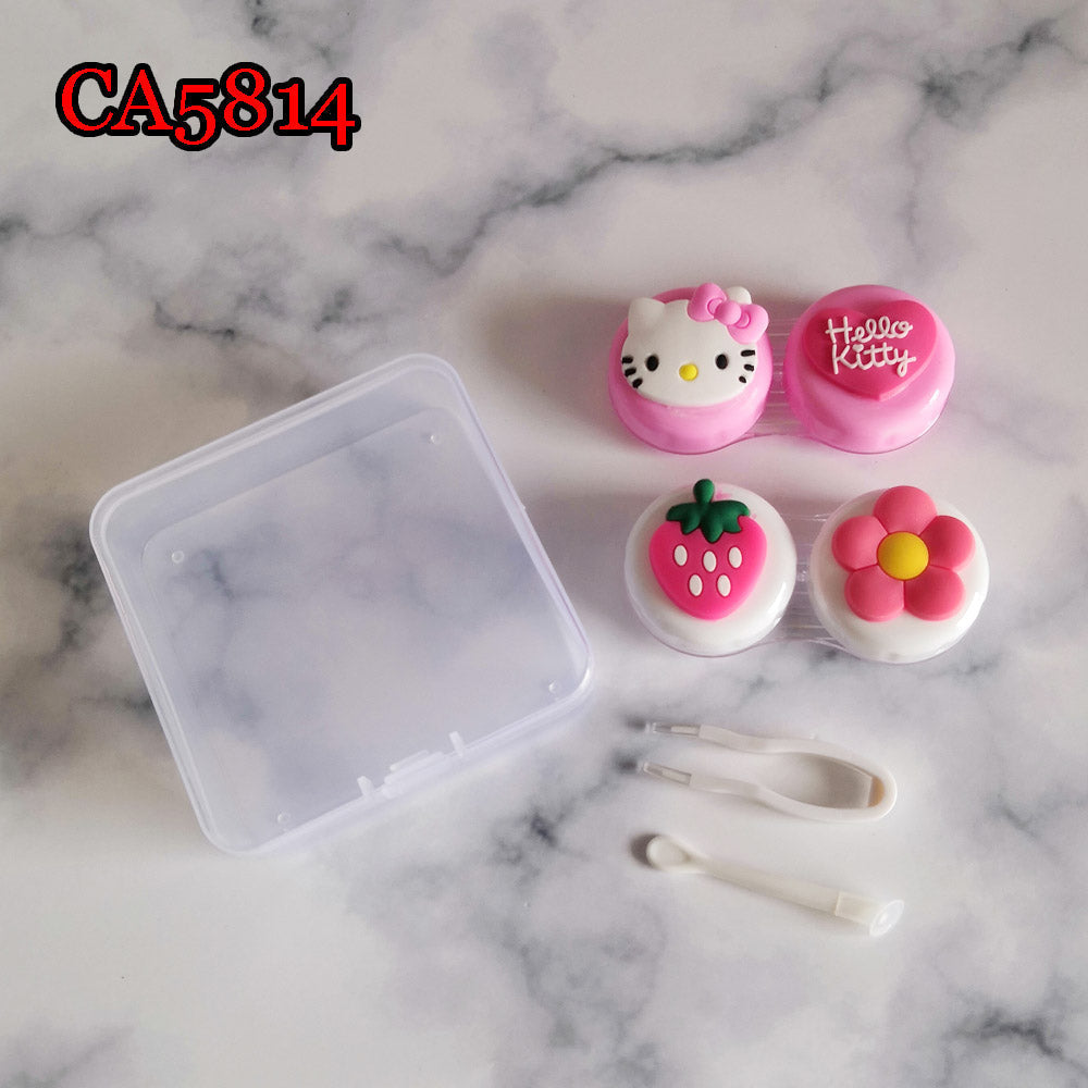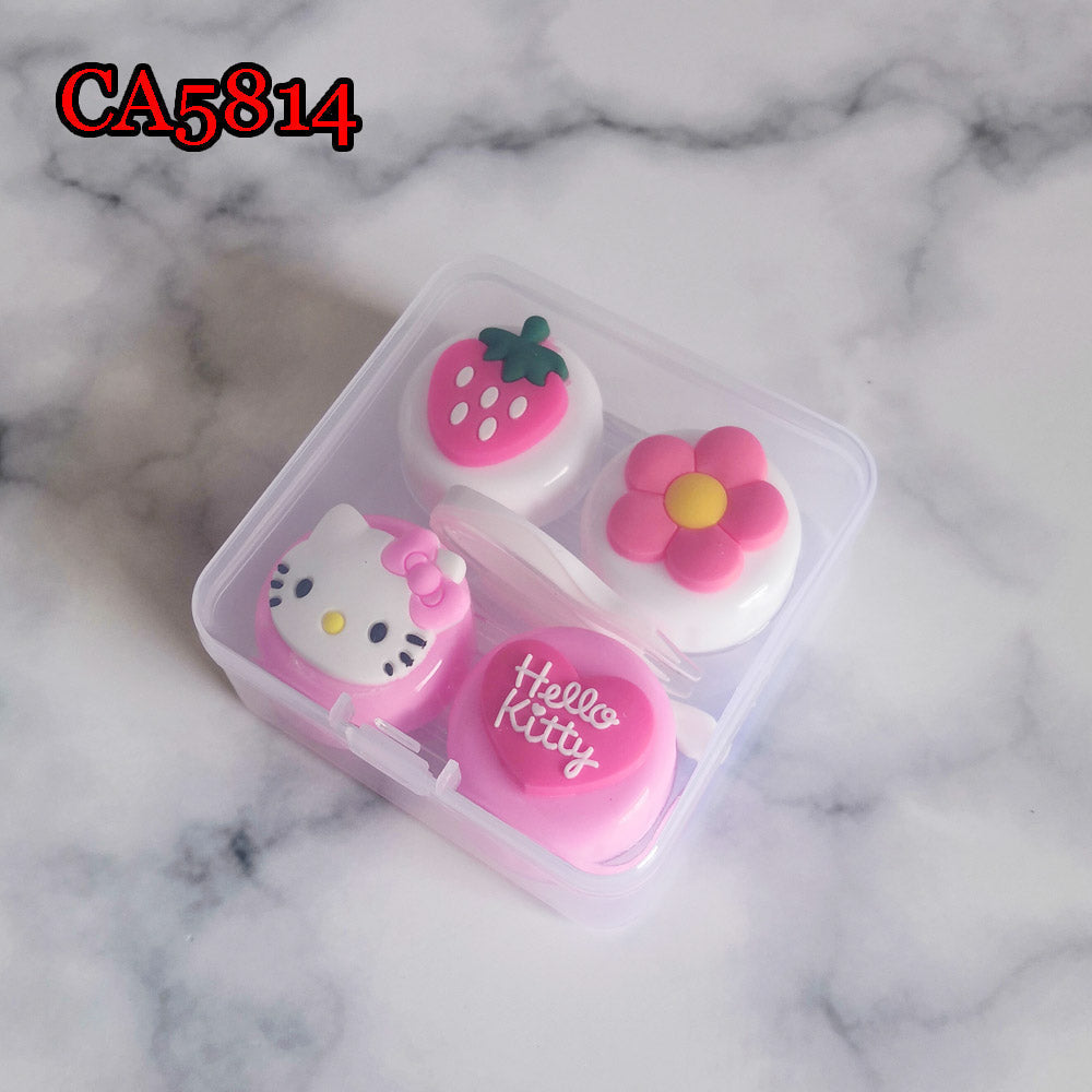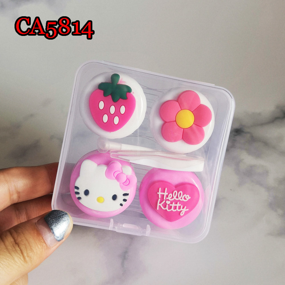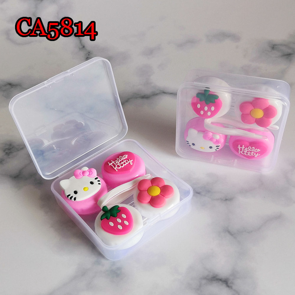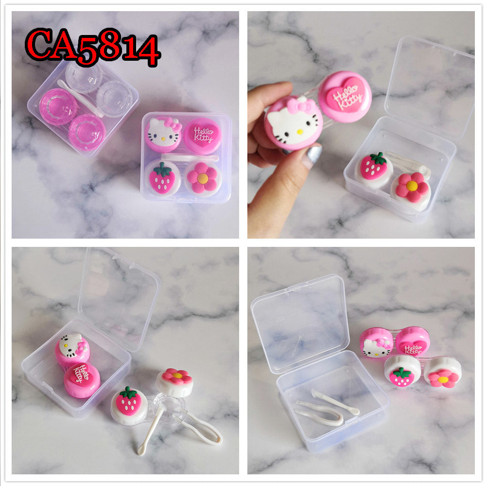 סט קופסת אחסון + 2 מחסניות לעדשות מגע בעיצוב הלו קיטי + ציוד לטיפול בעדשות מגע
