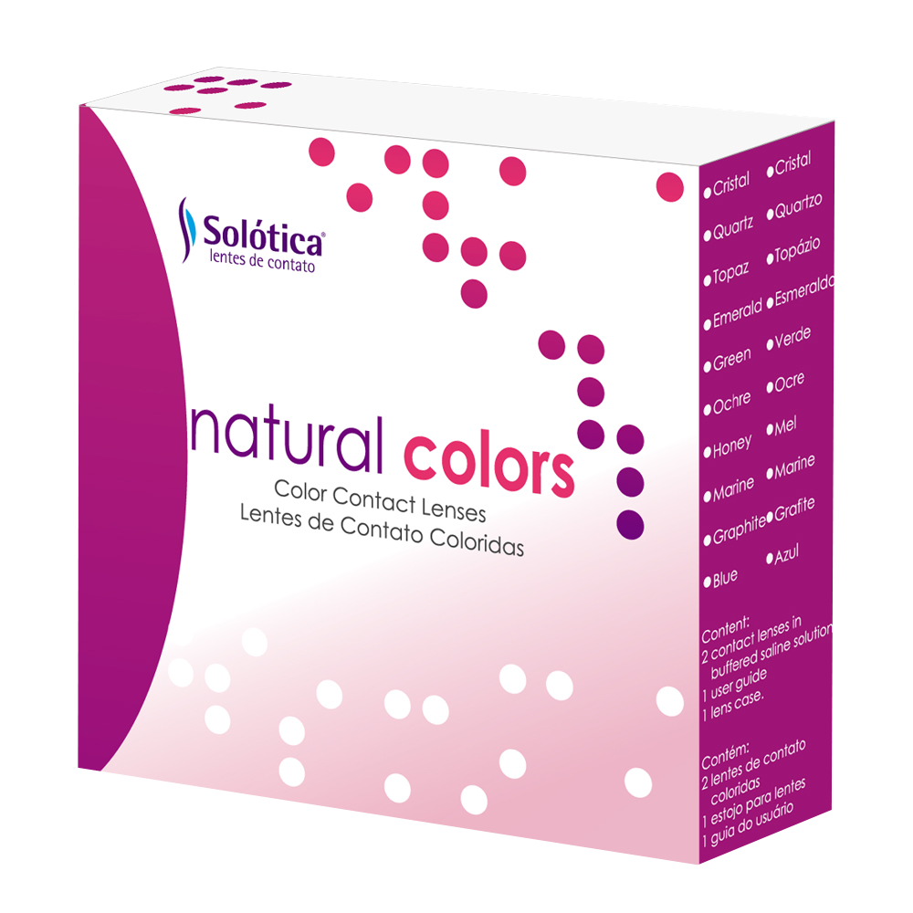 סדרת עדשות מגע הצבעוניות Solotica Natural Colors אלו עדשות מגע שנתיות בקוטר 14.2 מ"מ ובעלות פיגמנט עדין, כל עדשות המגע הצבעוניות בסדרה זו מכילות טבעת תוחמת (פס תוחם) ליצירת מראה טבעי במיוחד.